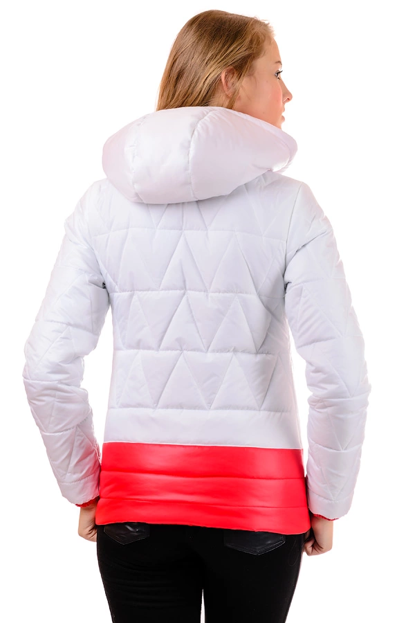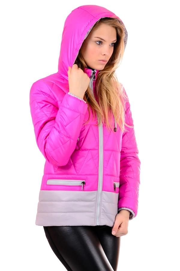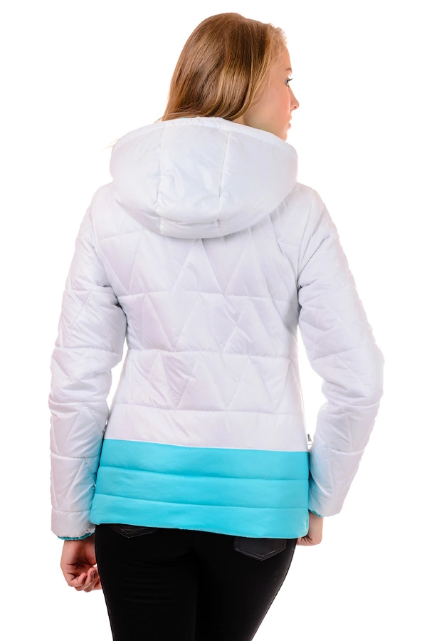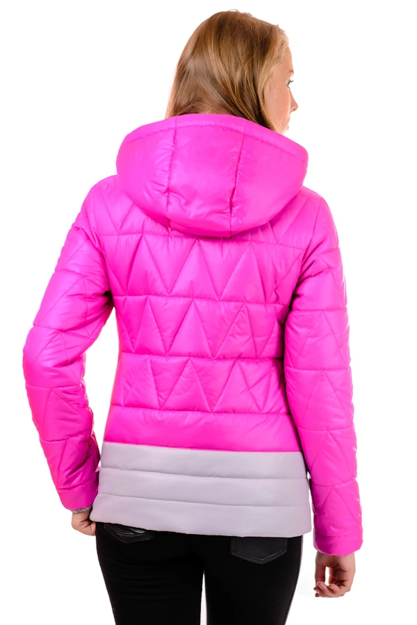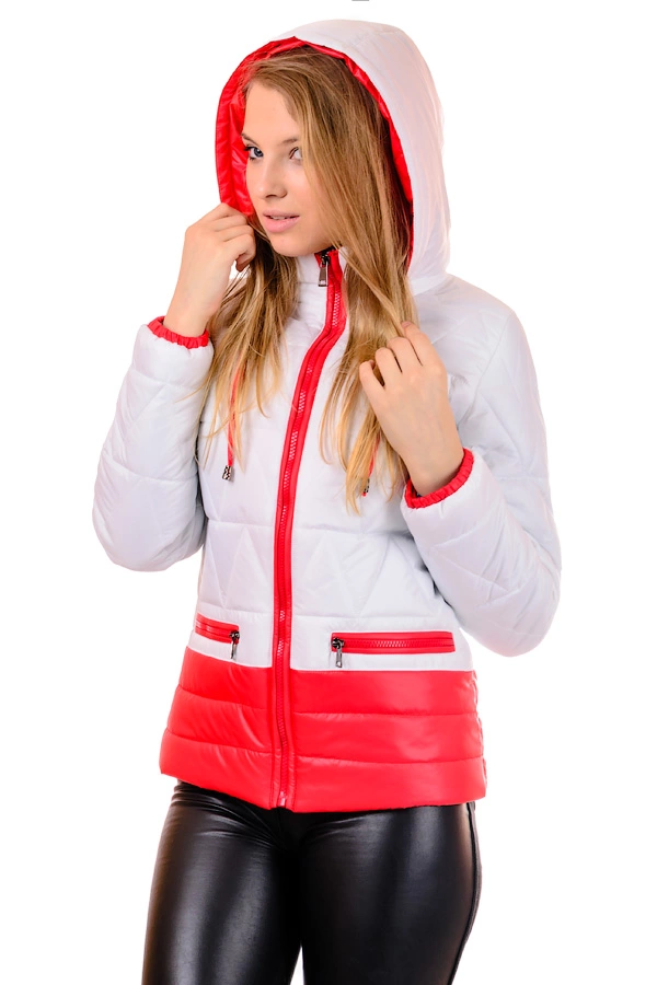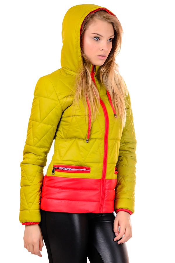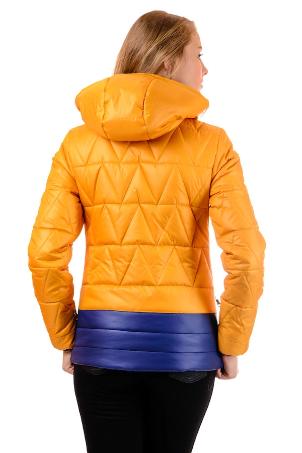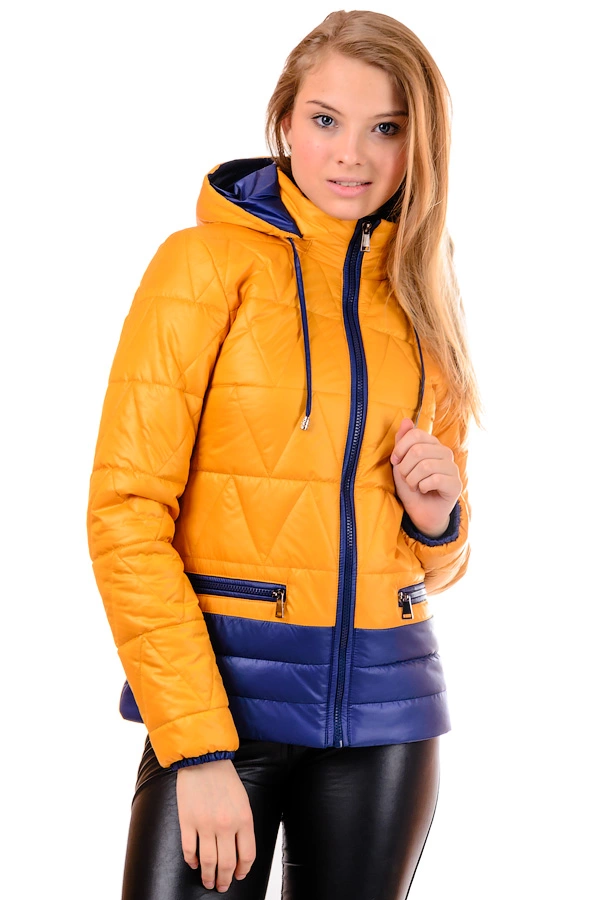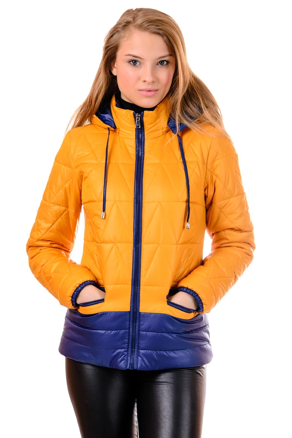 Стильная куртка , выполнена из качественного материала. Впереди два функциональных кармана, застегивается на молнию, воротник стойка.Комбинирована двумя цветами ткани , что очень интересно смотрится .Капюшон не съемный. Ткань - плащевка лаке, подкладка - нейлон, утеплитель - силиконизированный синтепон(плотность 120). Длина изделия 59-61 см, длина рукава 62 см.