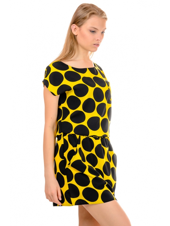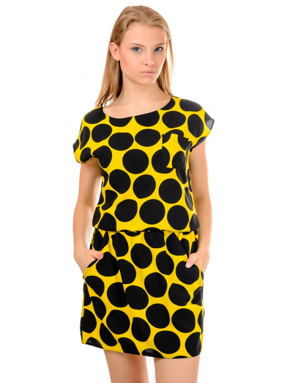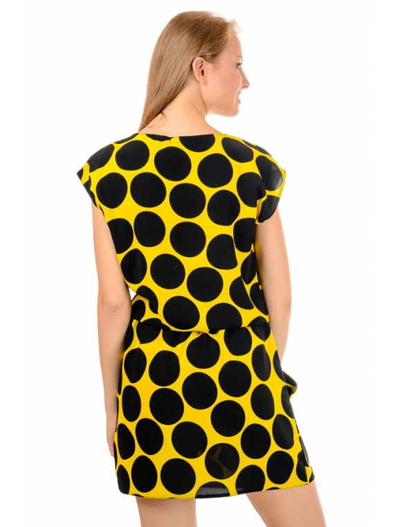 Стильное летнее платье-туника в горох. По бокам -прорезные карманы. Ткань - поплин шифон, длина изделия 85 см.