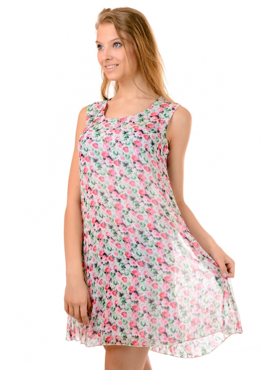 Женский летний короткий сарафан. Ткань - шифон. Свободного силуэт , хорошо садится на любую фигуру. Длина изделия 91см.