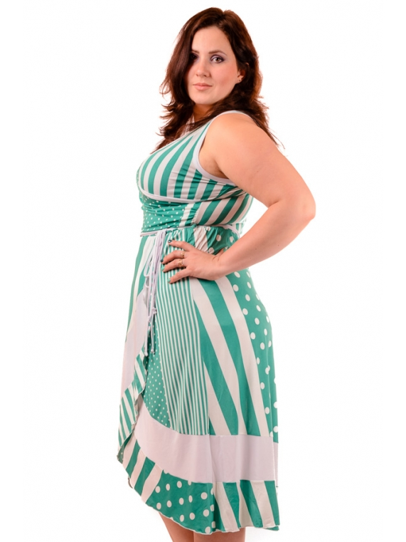 Летний яркий женский сарафан. Верхняя часть модели выполнена в форме запаха, вырез красиво ложится по груди. Расклешенная юбка также имеет запах, идущий каскадом, который ложится мягкими волнами. Модель представлена в нескольких цветовых вариантах. Основной цвет контрастирует с широкой яркой полосой. Лиф оторочен в цвет отделки. Очень красивый и легкий наряд. Длина изделия по спинке 121см.