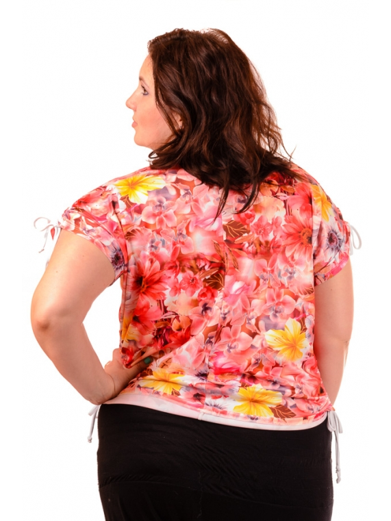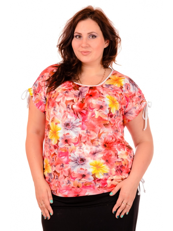 Летняя футболка свободного силуэта. Размеры 52-58. Ткань - масло/микромасло. Рукава и бока изделия собираются на затяжку, что позволяют регулировать длину.