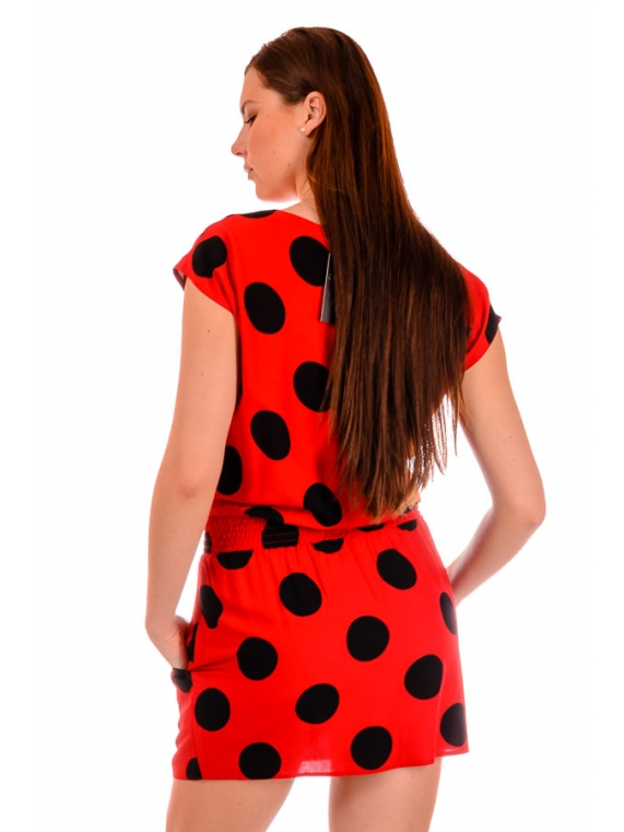 Летнее платье-туника. По бокам - прорезные карманы. Ткань - х/б вискоза. Длина изделия 85см.