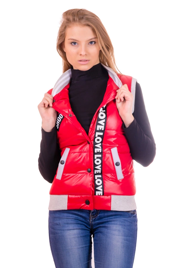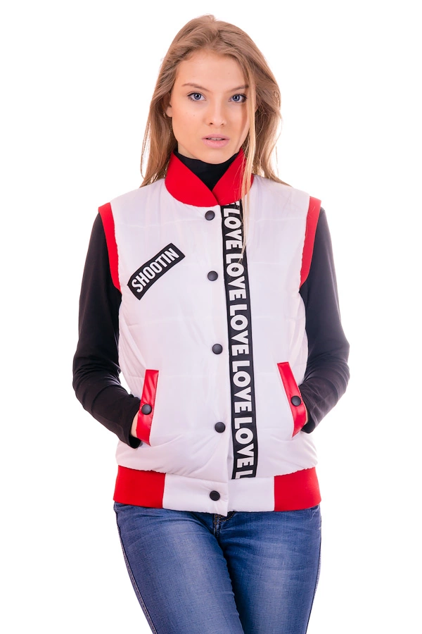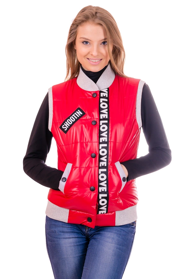 Стильная молодежная жилетка коллекции весна 2016. Жилетка, которая застегивается на кнопки. На полочке украшена пришивной фурнитурой(нашивки могут отличатся от фото!). Низ, манжеты и воротник обработаны резинкой , что выглядит очень интересно и модно в этом сезоне. Длина изделия 56-58 см .